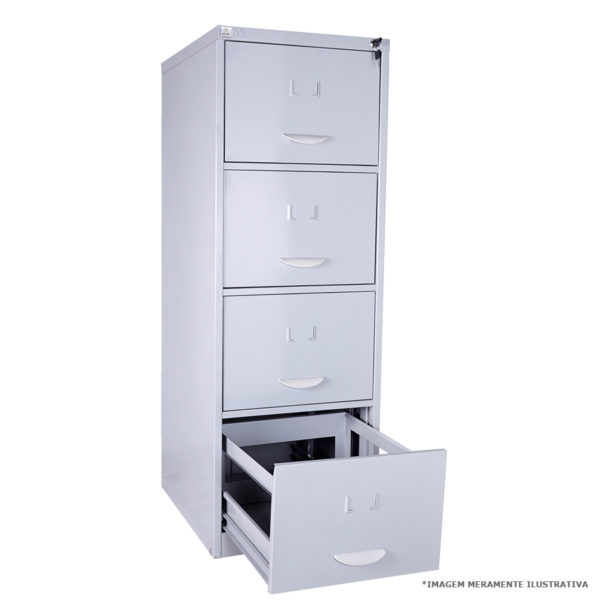Arquivo de Aço com 04 (quatro) gavetas c/ rolamento e puxador, para pasta suspensa, fabricado em chapa 26, resistente a 15kg por gaveta. Pode ser utilizado em qualquer ambiente, desde escritórios e até mesmo em residências. Este produto tem um excelente custo.