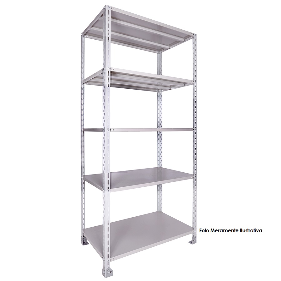 Produzido em Aço 1008 "CERTIFICADO" de alta qualidade com tratamento anti-ferruginoso, contém 05 prateleiras com dobra dupla em "CHAPA 22" (0,75mm) com reforço Ômega resistente a 100kg distribuidos por prateleira e 04 colunas L3 em CHAPA 16 (1,50mm) permitindo que você regule as prateleiras na altura conforme sua necessidade. O acabamento em sistema de pintura eletrostática a pó (epóxi) em alta temperatura garante maior durabilidade do produto e resistência ao tempo e ferrugem, acompanhando um kit com 40 parafusos e 40 porcas chave 11 (08 por prateleira).