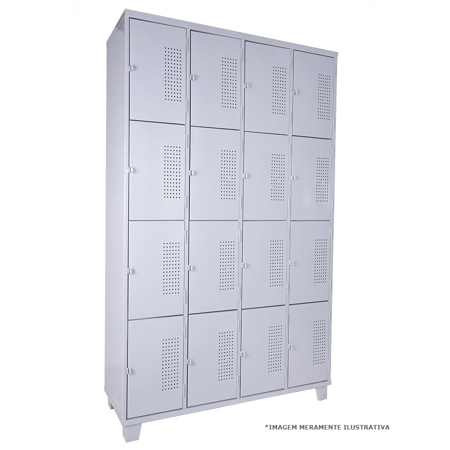 Roupeiro de Aço com 16 Portas Pequenas em “CHAPA 26”com Pitão para Cadeado, ideal para academias, supermercados, empresas e para uso em geral. Possui portas ventiladas e pés elevados.